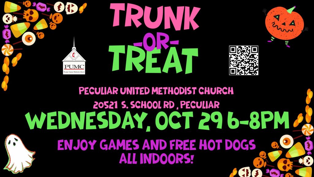 We would LOVE to have at least 30 stations (‘trunks’) set up! Please let us know if you are able to decorate a ’station’ for this year’s fun event!! Contact Sarah Oliver or Justine Baron if you are willing to help out! We could use kitchen helpers AND ’trunks’, and LOTS OF candy!! ALSO CANDY and MORE CANDY NEEDED!!! We will be collecting TONS of candy for our PUMC Trunk-or-Treat event as well as PUMC “Trunk” at the Harvest Moon Festival