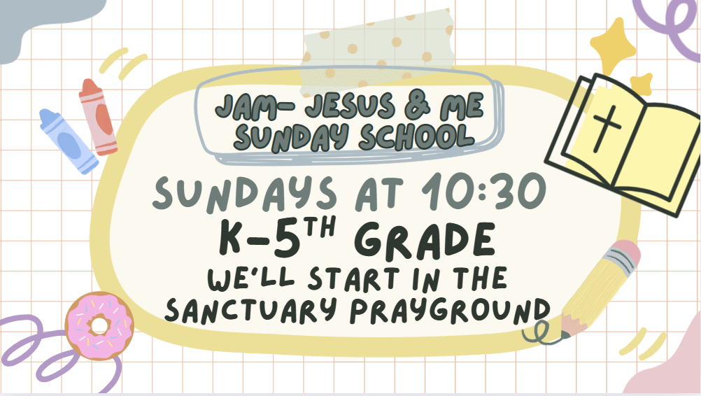 We’ll start in the sanctuary ‘PrayGround’ area and dismiss to the JAM Classroom after Praise & Worship! Please contact Justine Baron with questions!
